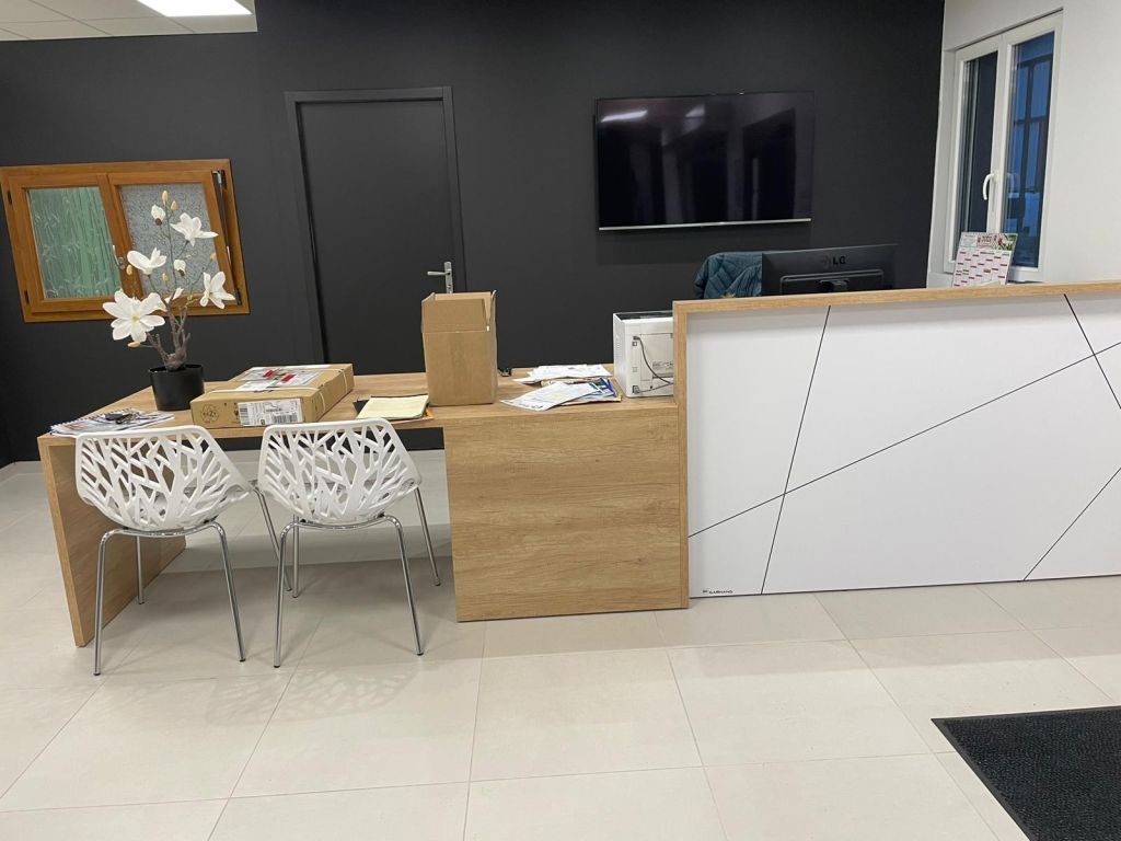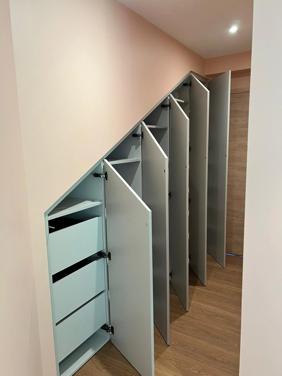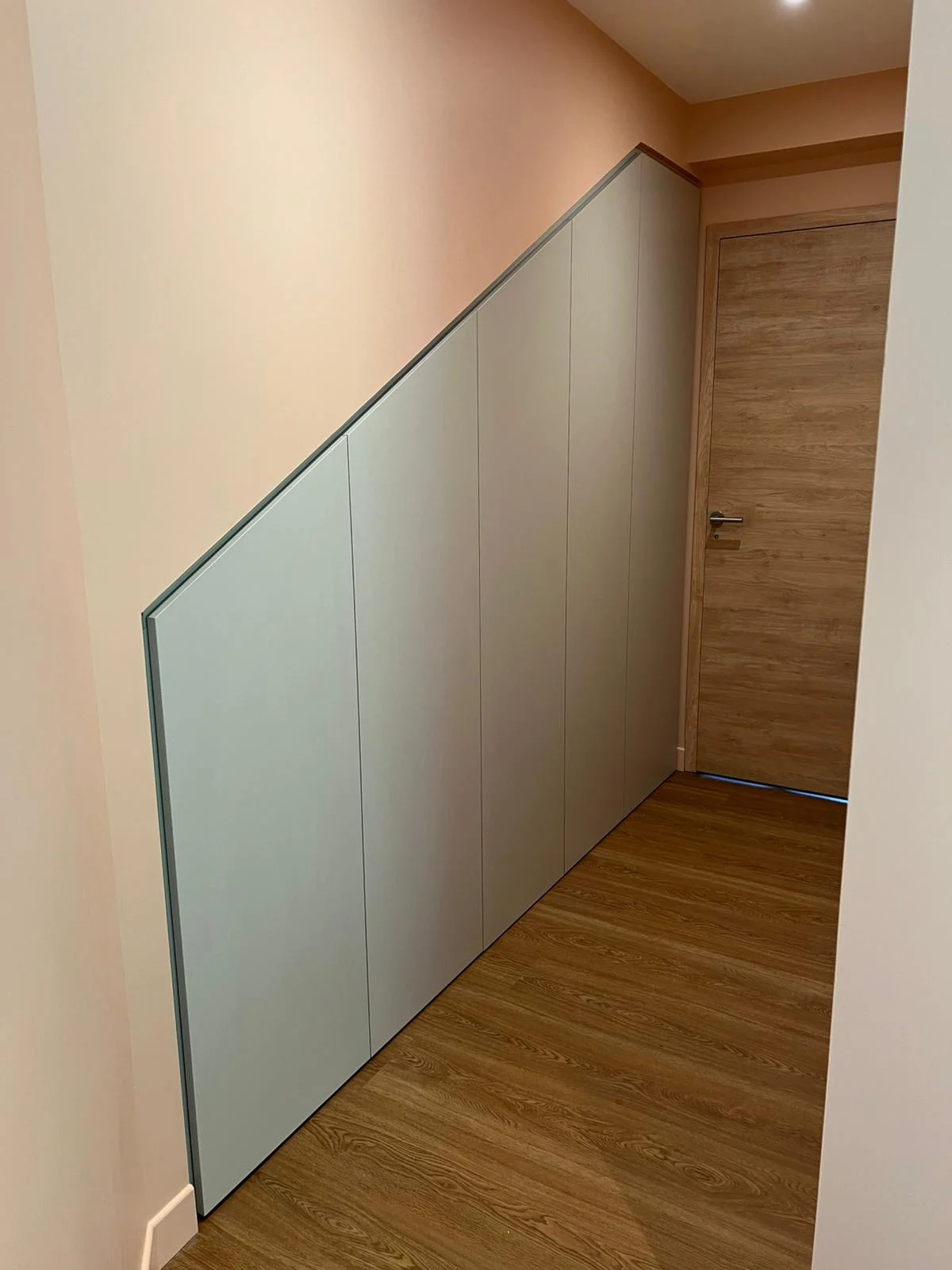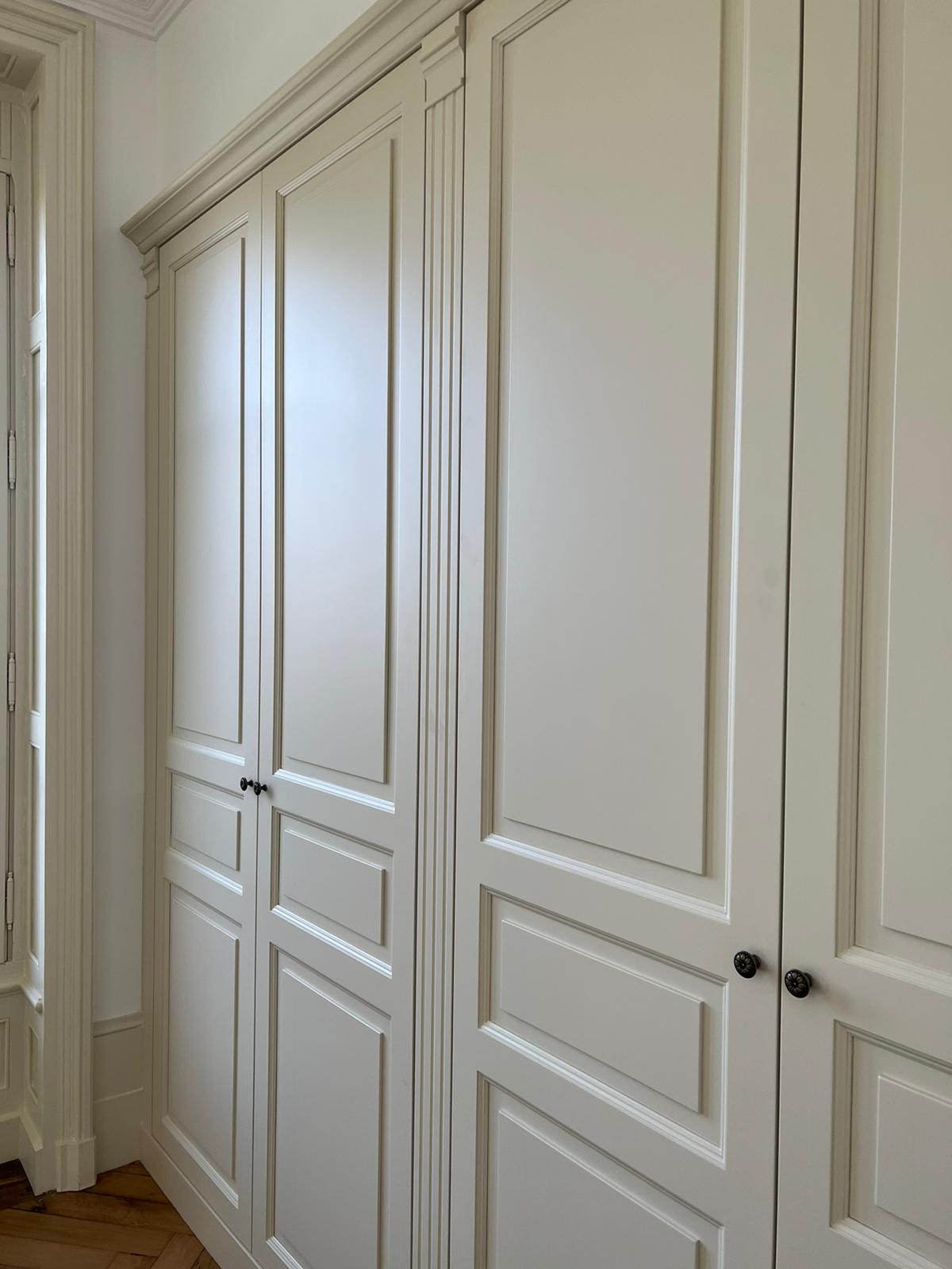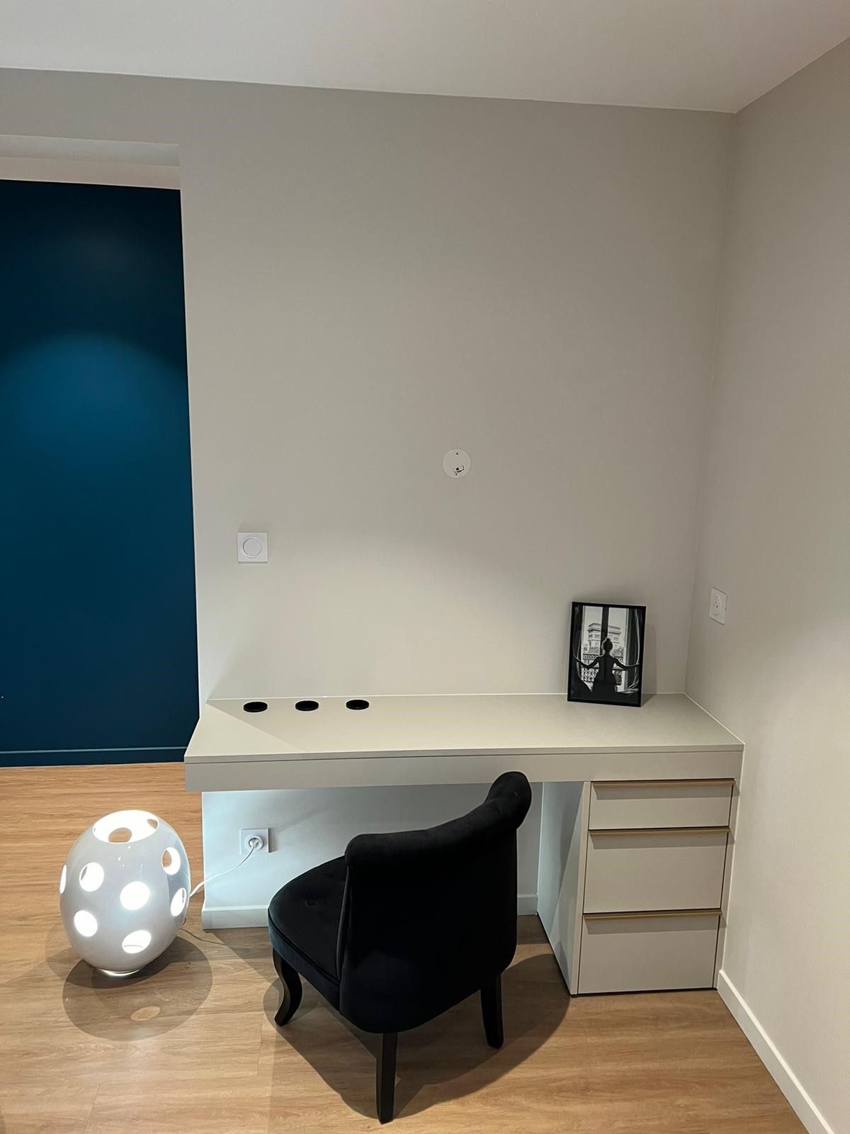 Conception d’un meuble suspendu sur mesure mêlant bois naturel et façades blanches texturées