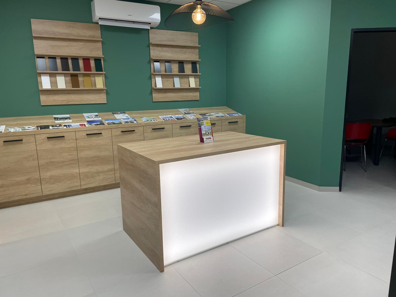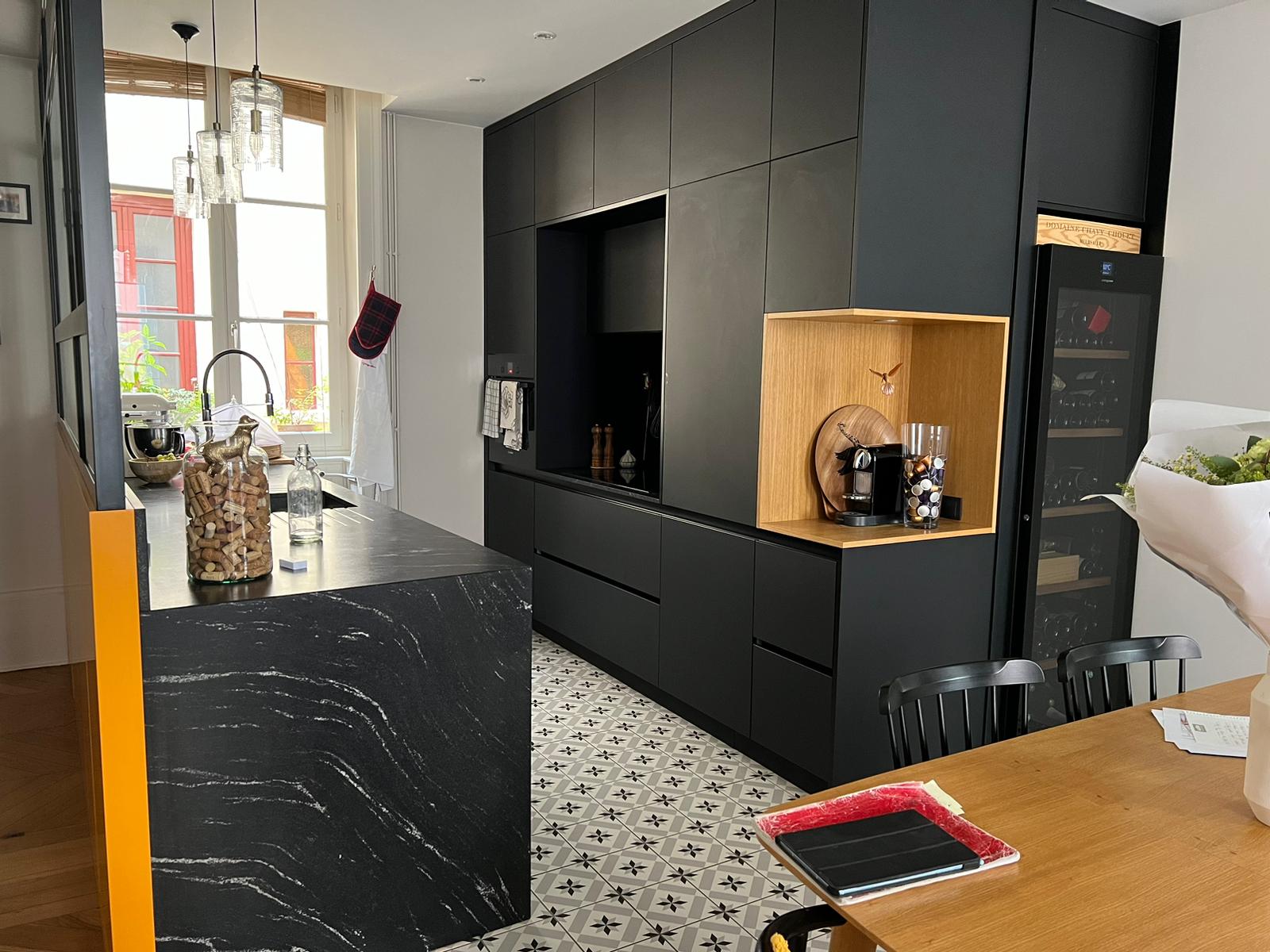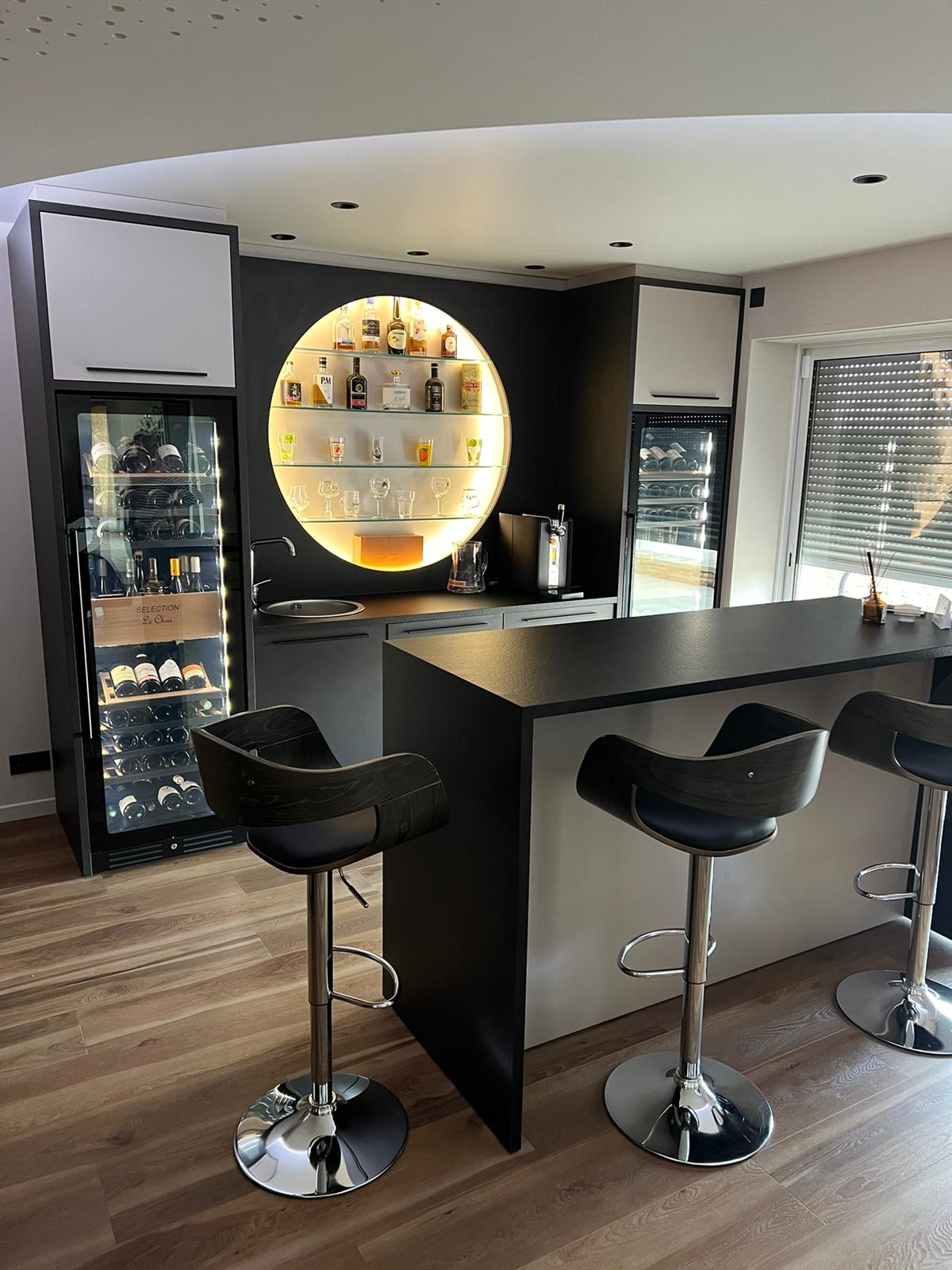 Création d’un espace bar design avec cave à vin intégrée et éclairage circulaire rétroéclairé